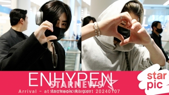 그룹 엔하이픈(ENHYPEN) 정원, 희승, 제이, 제이크, 성훈, 선우, 니키가 '제38회 골든디스크 어워즈' 일정을 마치고 7일 오전 인천국제공항을 통해 입국하고 있다. 2024.01.07