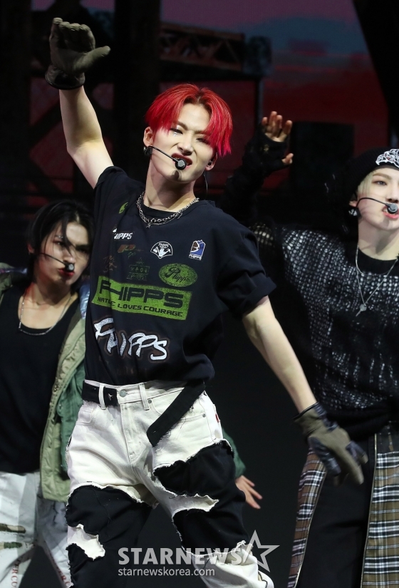 신인 그룹 올아워즈(ALL(H)OURS) 유민이 10일 오후 서울 광진구 예스24 라이브홀에서 진행된 첫 번째 미니 앨범 'ALL OURS(올아워즈)' 발매 기념 쇼케이스에서 멋진 무대를 선보이고 있다.