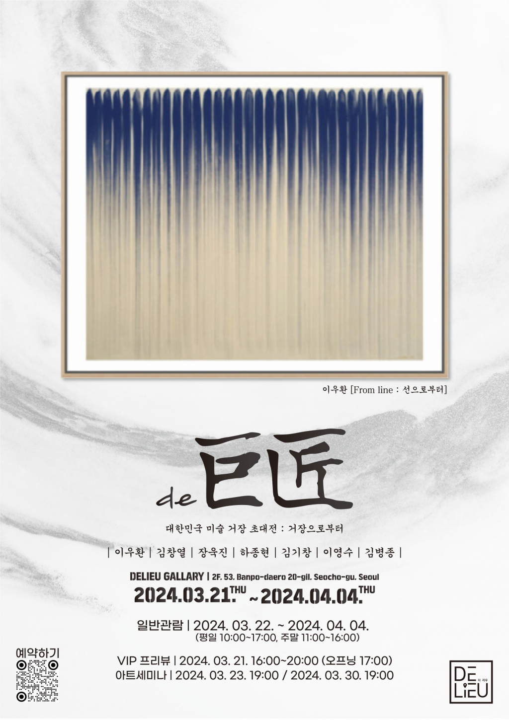 더리우 갤러리는 오는 21일부터 4월 4일까지 '대한민국 미술 거장 초대전 : de 거장 (거장으로부터)'을 개최한다. 이우환, 김창열, 장욱진, 김기창, 하종현, 이영수 그리고 김병종 등 국내 최고의 미술가들이 참여하는 대규모 전시다. 이와 함께 사치갤러리에서 전시됐던 더리우의 전속작가 박현수, 김영환, 김썽정, 리정 작가가의 작품도 대중에게 공개된다.