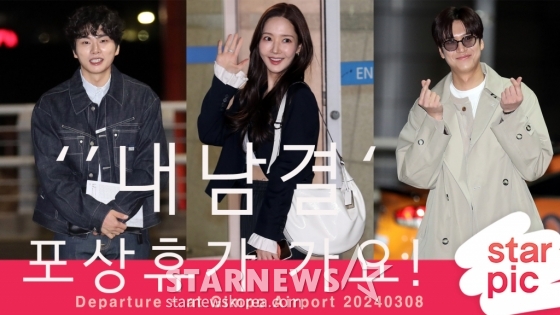배우 이이경, 나이우, 박민영이 드라마 '내 남편과 결혼해줘' 포상휴가 차 10일 오전 인천국제공항을 통해 출국하고 있다. 2024.03.10
