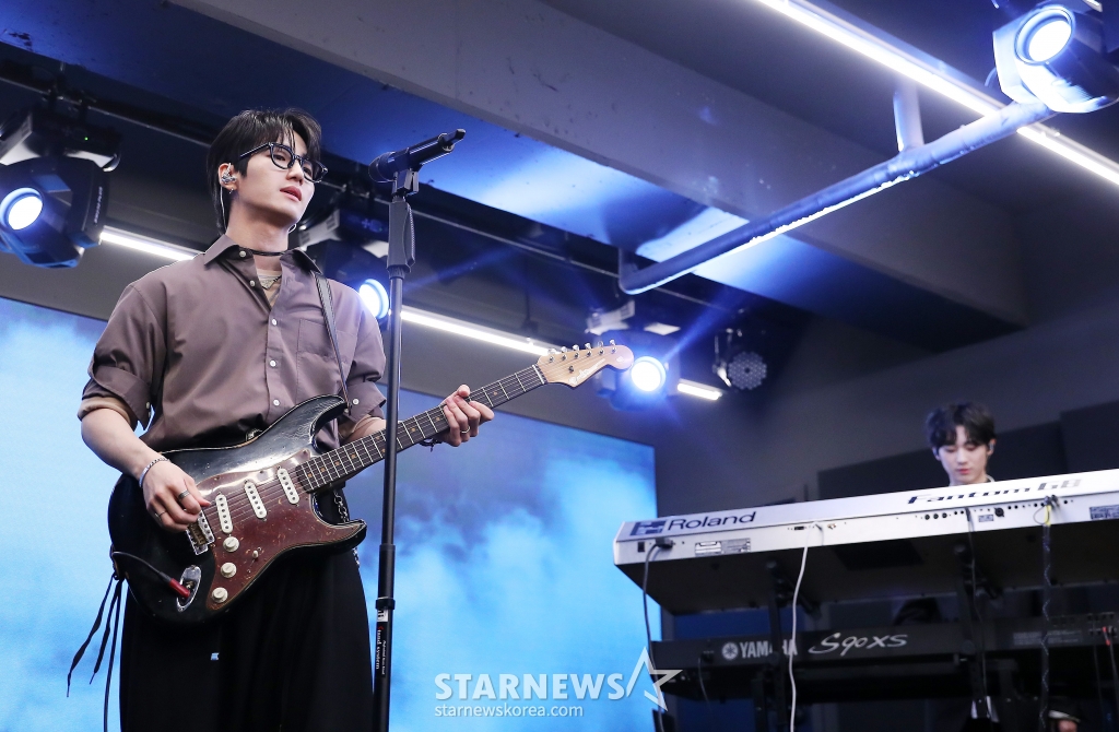 신예 2인조 밴드 NND(엔엔디)가 15일 오후 서울 강남구 논현동 리엠아트센터에서 진행된 데뷔 앨범 'Wonder,I' 발매 기념 쇼케이스에 참석해 멋진 공연을 선보이고 있다.