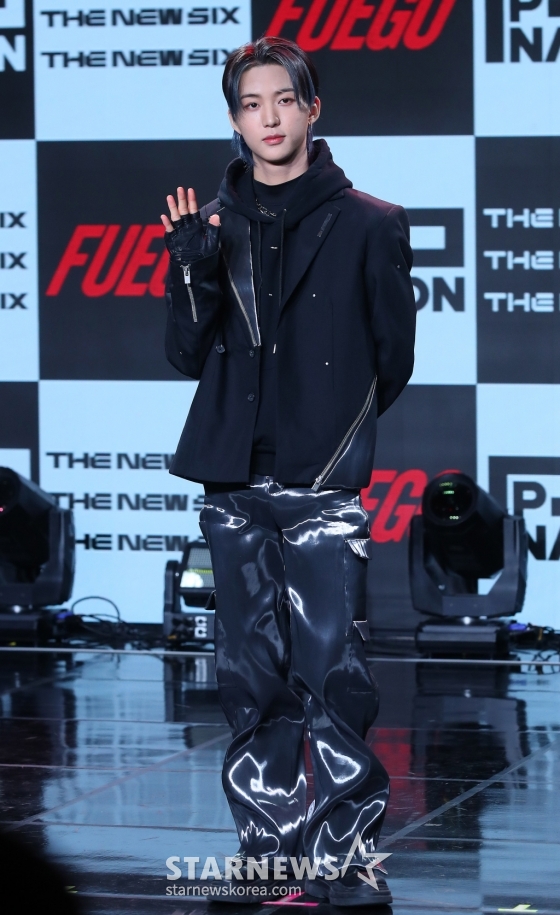 보이 그룹 더뉴식스(THE NEW SIX) 은휘가 20일 오후 서울 강남구 청담동 일지아트홀에서 진행된 첫 번째 싱글 'FUEGO(푸에고)' 발매 기념 쇼케이스에 참석해 포즈를 취하고 있다.