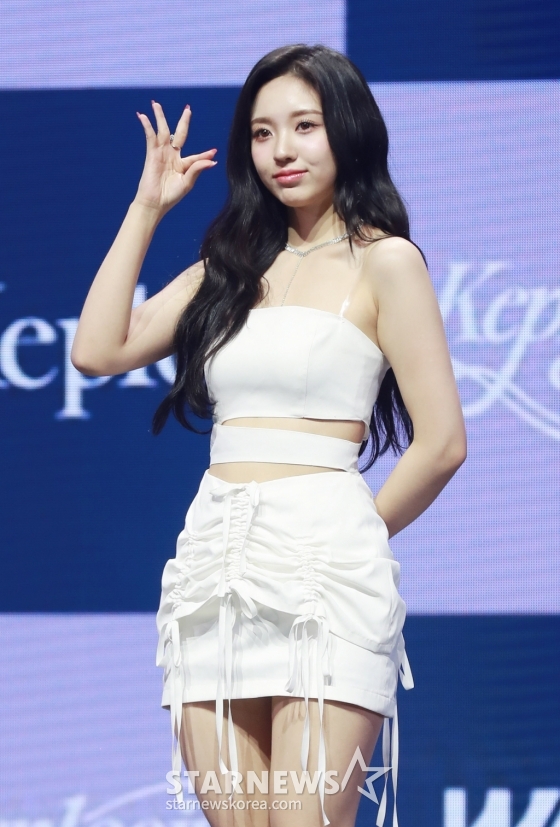 걸그룹 케플러 강예서가 3일 오후 서울 광진구 예스24라이브홀에서 진행된 첫 정규앨범 '켑원고잉 온'(Kep1going On) 발매기념 쇼케이스에서 포즈를 취하고 있다.