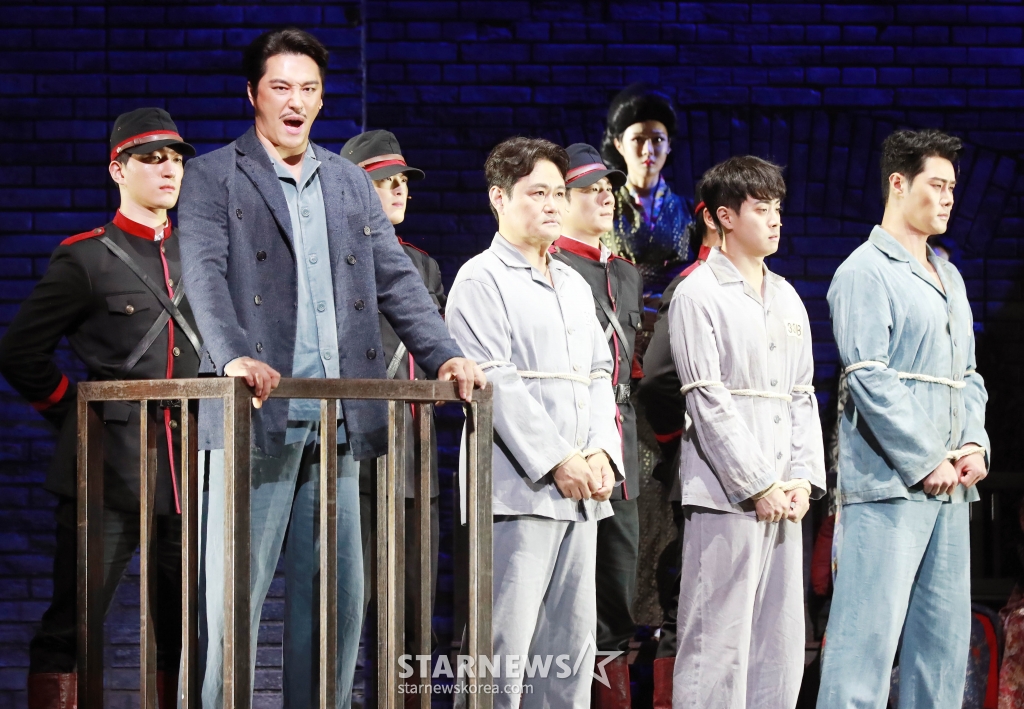 민우혁, 김진수 등 출연배우들이 4일 오후 서울 세종문화회관 대극장에서 진행된 뮤지컬 '영웅' 15주년 공연 프레스콜에서 열연하고 있다. /2024.06.04 /사진=이동훈