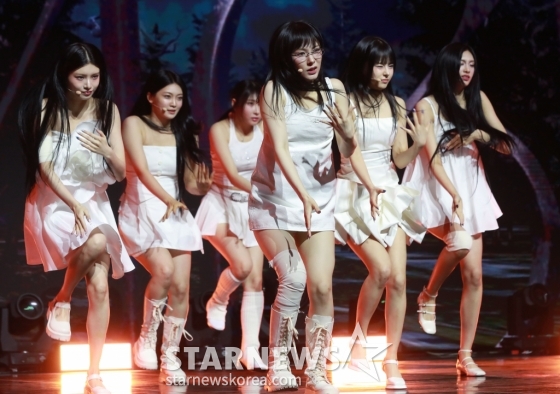 걸그룹 에버글로우(EVERGLOW)가 10일 오후 서울 용산구 블루스퀘어에서 진행된 다섯 번째 싱글 앨범 'ZOMBIE'(좀비) 발매기념 쇼케이스에서 신곡을 선보이고 있다.
