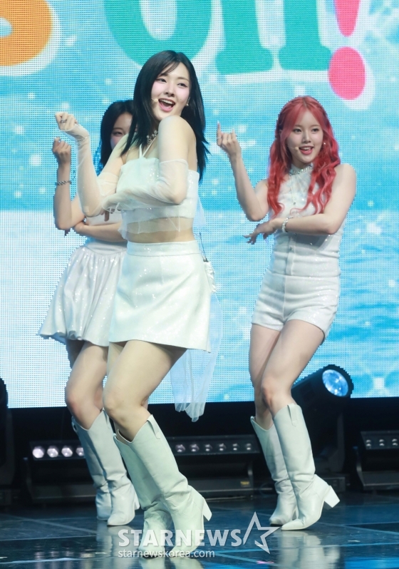 걸그룹 위클리(Weeekly)가 9일 서울 마포구 서교동 메세나폴리스 신한카드 SOL 페이 스퀘어 라이브홀에서 진행된 미니 6집 '블리스(Bliss)' 쇼케이스에서 신곡을 선보이고 있다.