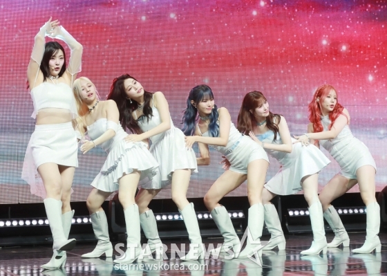 걸그룹 위클리(Weeekly)가 9일 서울 마포구 서교동 메세나폴리스 신한카드 SOL 페이 스퀘어 라이브홀에서 진행된 미니 6집 '블리스(Bliss)' 쇼케이스에서 신곡을 선보이고 있다.