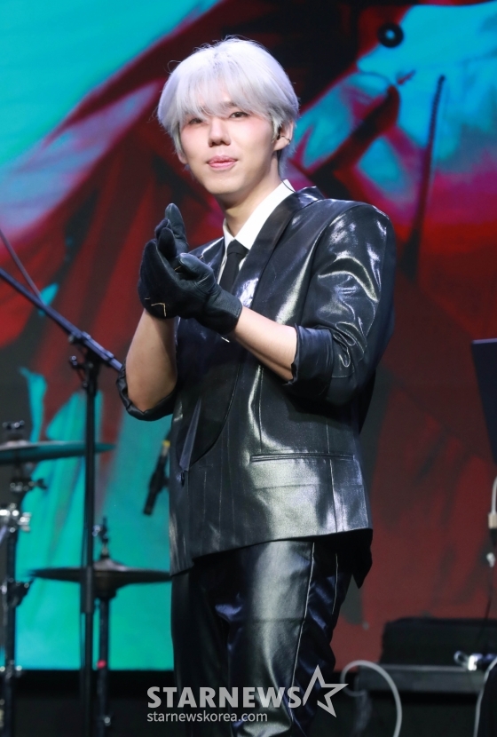 밴드 케이브(KAVE)의 보컬 가호가 23일 오후 서울 마포구 한 공연장에서 진행된 첫 미니앨범 ‘Flight of Ideas’ 쇼케이스에서 포즈를 취하고 있다. /2024.07.23