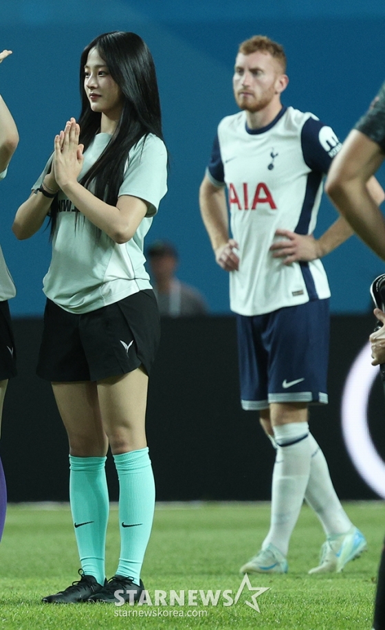 걸그룹 뉴진스(NewJeans-민지 하니 다니엘 해린 혜인) 민지가 시축을 위해 입장하고 있다.