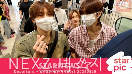그룹 넥스지(NEXZ) 토모야, 유우, 하루, 소 건, 세이타, 휴이, 유키가 일본 일정을 위해 29일 오전 서울 강서구 김포국제공항을 통해 출국하고 있다. 2024.08.29