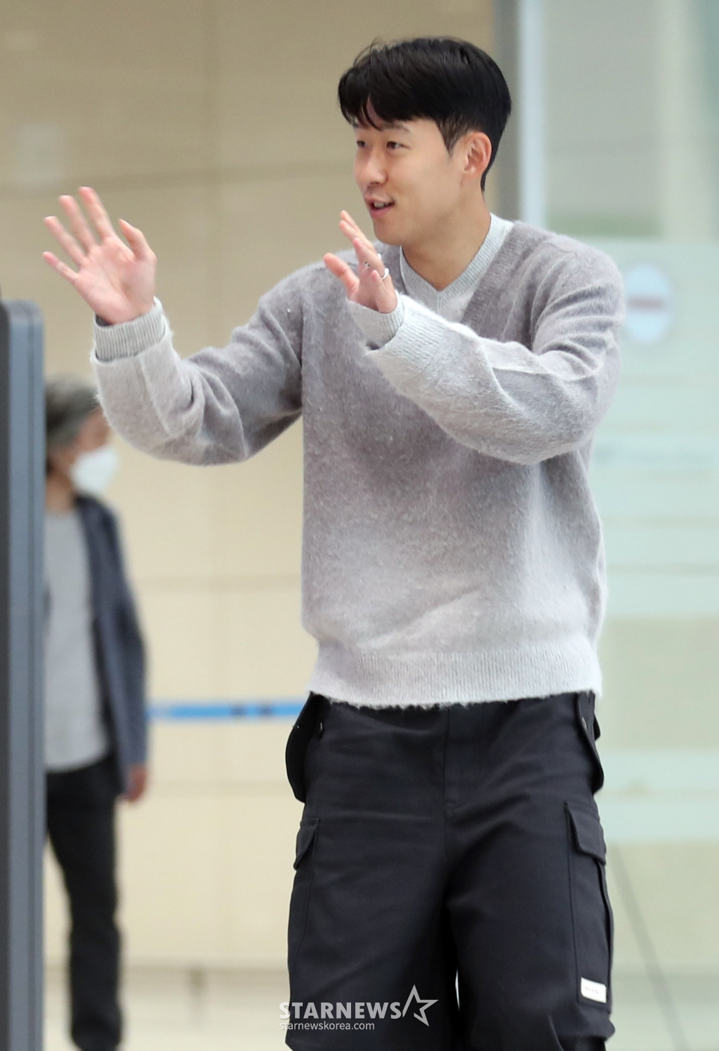 토트넘 홋스퍼 손흥민이 오는 5일 서울 상암월드컵경기장에서 열리는 팔레스타인과 2026 국제축구연맹(FIFA) 북중미 월드컵 3차 예선 1차전을 위해 3일 오후 인천국제공항을 통해 입국하고 있다. 2024.09.03