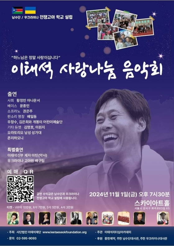 11월 1일 오후 7시 30분 서울 강서구 스카이아트홀에서 열리는 이번 음악회는 남수단 및 우크라이나 전쟁고아 학교 설립을 위해 열린다.