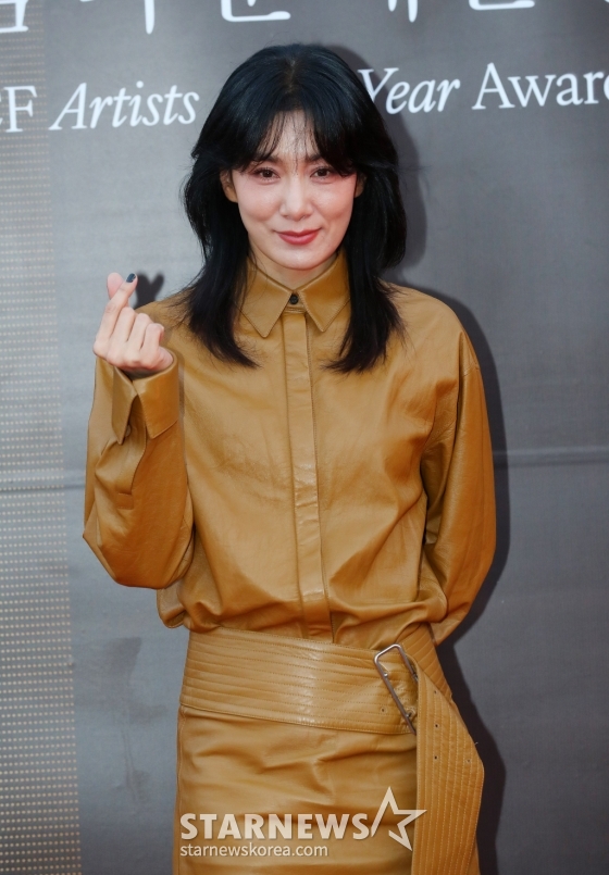 배우 김서형이 24일 오후 서울 강동구 고덕동 스테이지28에서 열린 '제14회 아름다운예술인상'에 참석해 포즈를 취하고 있다.