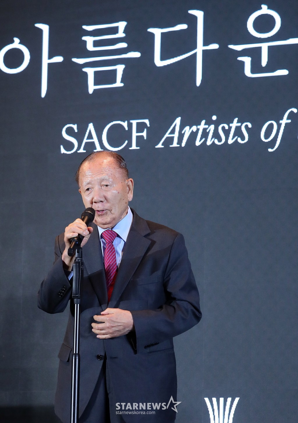 김동호 부산국제영화제 초대 집행위원장이 24일 오후 서울 강동구 고덕동 스테이지28에서 열린 '제14회 아름다운예술인상'에서 공로예술인상을 수상한 뒤 소감을 말하고 있다.