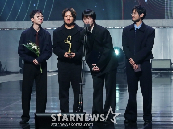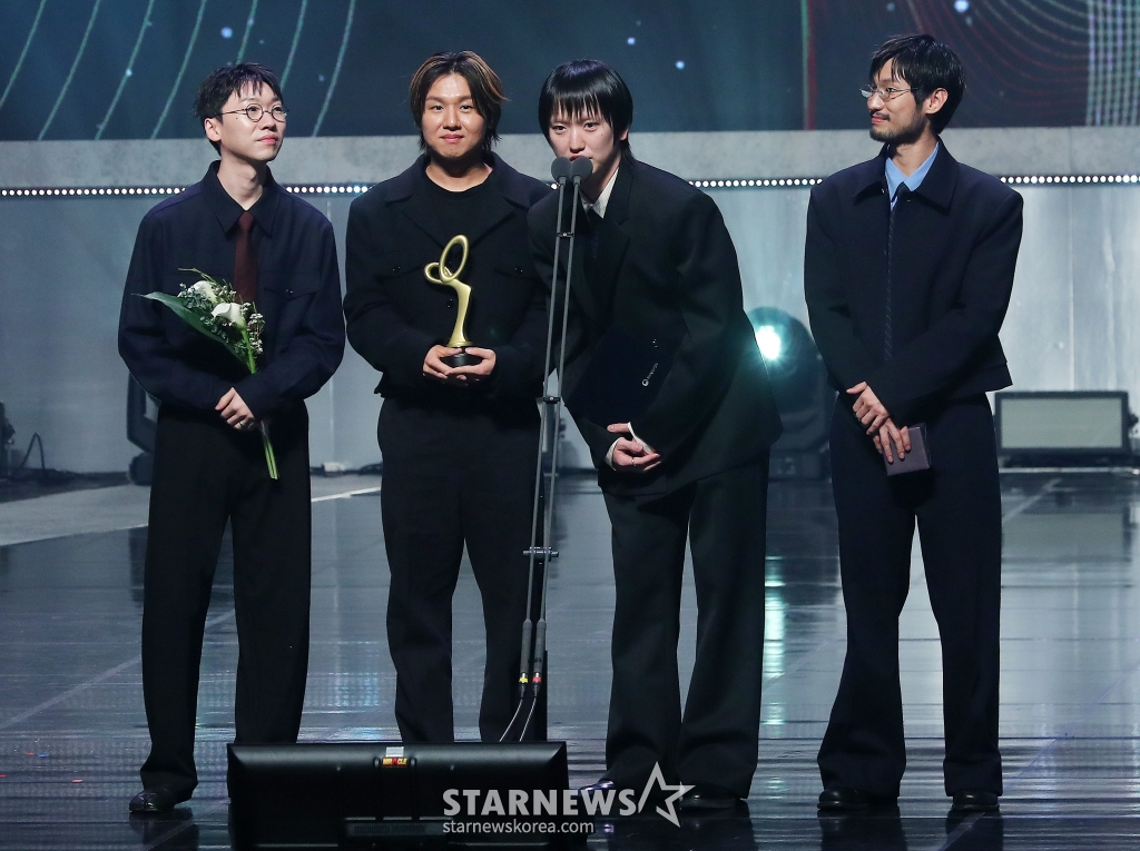 실리카겔이 31일 오후 서울 중구 국립극장 해오름극장에서 진행된 '2024 대한민국 대중문화예술상'에서 문체부장관 표창을 수상한 뒤 소감을 말하고 있다.