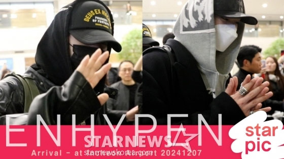 그룹 엔하이픈(ENHYPEN) 정원, 희승, 선우, 제이크, 성훈, 제이, 니키가 필리핀 일정을 마치고 7일 오후 인천국제공항을 통해 입국하고 있다. 2024.12.07