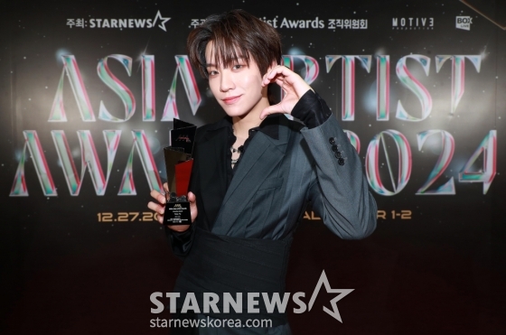 태국 가수 토니 유가 27일 오후 태국 방콕 임팩트 챌린저 홀 1-2(IMPACT Challenger Hall 1-2)에서 진행된 '제9회 아시아 아티스트 어워즈'(The 9th Asia Artist Awards, 이하 'AAA 2024')에서 AAA 이모티브상을 수상한 뒤 포즈를 취하고 있다.