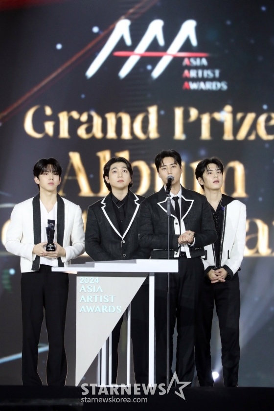 연예대중문화데이식스 '2024 올해의 앨범'[★포토]발행 : 2024.12.27 ・ 23:45방콕(태국)=임성균 기자그룹 데이식스가 27일 오후 태국 방콕 임팩트 챌린저 홀 1-2(IMPACT Challenger Hall 1-2)에서 열린 '제 9회 아시아 아티스트 어워즈'(The 9th Asia Artist Awards')' 에서 'AAA 대상 올해의 앨범상'을 수상하고 소감을 말하고 있다. 2024.12.27<저작권자 © 스타뉴스, 무단전재 및 재배포 금지>태국방콕아시아아티스트어워즈AAAAAA2024임팩트챌린저홀추천 기사임성균 기자기자홈좋아요 연예-대중문화의 인기 급상승 뉴스연예-대중문화의 최신 뉴스