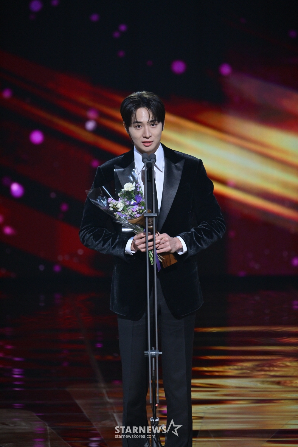 '2024 KBS 연기대상'은 지난달 31일 서울 영등포구 여의도 KBS홀에서 MC 장성규, 소녀시대 서현, 문상민의 진행 아래 시상식이 꾸며졌다. 작년 12월 29일 무안공항 제주항공 여객기 참사 여파로 국가 애도 기간이 선포됨에 따라 추모 물결에 동참, 예정된 생중계를 취소하고 방송을 한 해 미뤘다. / 사진제공=KBS