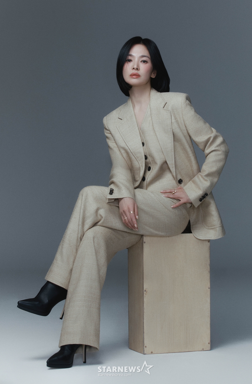 영화 '검은 수녀들'의 배우 송혜교가 21일 진행된 라운드 인터뷰를 위해 포즈를 취하고 있다. /사진제공=UAA 2025.01.21