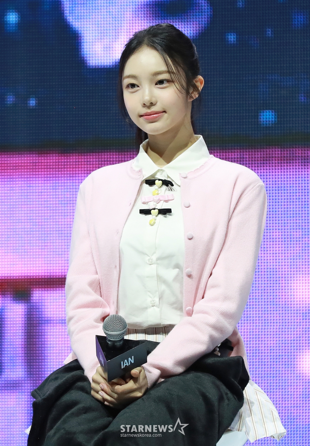 SM엔터테인먼트 신인 걸그룹 '하츠투하츠'(Hearts2Hearts) 이안이 24일 오후 서울 광진구 예스24라이브홀에서 진행된 첫 싱글 '더 체이스'(The Chase) 발매기념 쇼케이스에서 인사말을 하고 있다. /2025.02.24