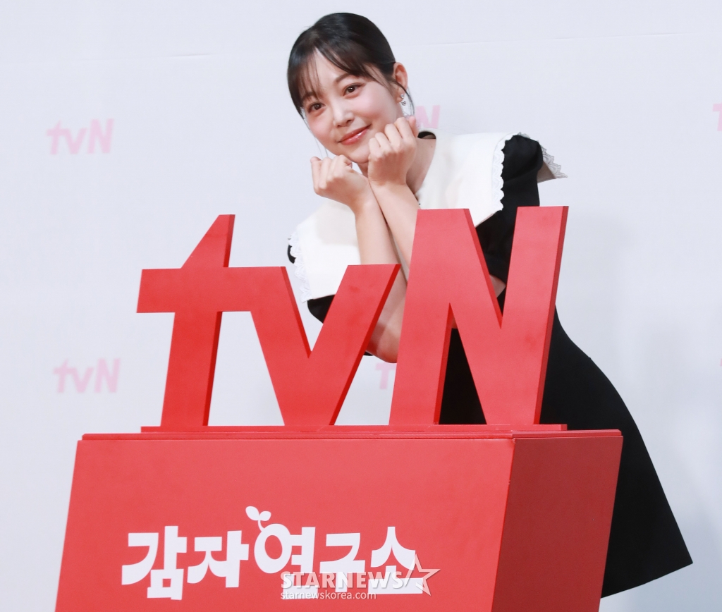배우 김가은이 27일 오후 서울 신도림 라마다 호텔에서 진행된 tvN 새 토일드라마 '감자연구소' 제작발표회에 참석해 포즈를 취하고 있다.