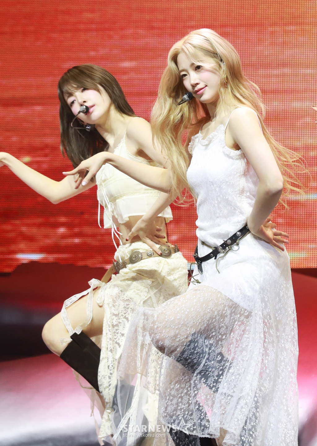 연예대중문화르세라핌 카즈하-사쿠라 '큐티 & 시크'[★포토]발행 : 2025.03.14 ・ 12:25이동훈 기자걸그룹 르세라핌(LE SSERAFIM)이 14일 오전 서울 광진구 예스24라이브홀에서 진행된 미니 5집 ‘HOT’ 발매기념 쇼케이스에서 신곡을 선보이고 있다.이번 앨범은 팝 장르의 타이틀곡 ‘HOT’을 비롯해 ‘Born Fire’, ‘Come Over’, ‘Ash’, ‘So Cynical(Badum)’등 총 5곡이 수록됐다. /2025.03.14<저작권자 © 스타뉴스, 무단전재 및 재배포 금지>브리핑요약 없이도 가볍게 읽으실 수 있는 짧은 뉴스입니다.추천 기사이동훈 기자기자홈좋아요연예-대중문화의 인기 급상승 뉴스연예-대중문화의 최신 뉴스AD