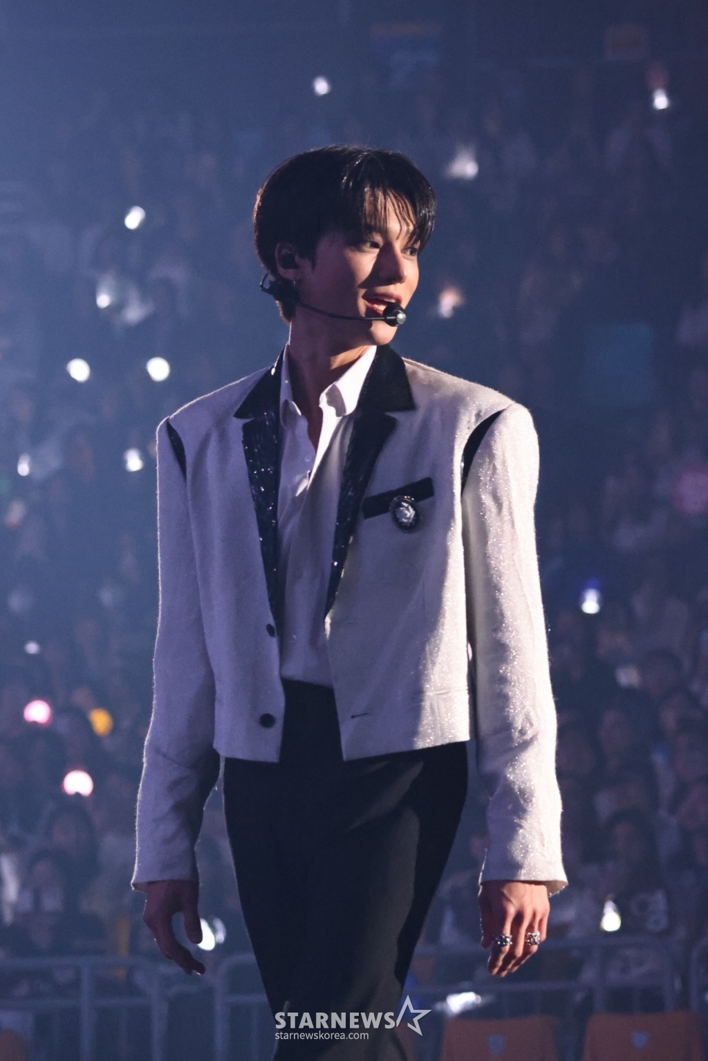 그룹 에이티즈 우영이 23일 오후 서울 올림픽공원 KSPO DOME에서 진행된 2025 에이티즈 월드 투어 ''투워즈 더 라이트 : 윌 투 파워' 피날레 인 서울('TOWARDS THE LIGHT : WILL TO POWER' FINALE IN SEOUL)'에서 멋진 무대를 펼치고 있다. /사진제공=KQ 2025.03.23