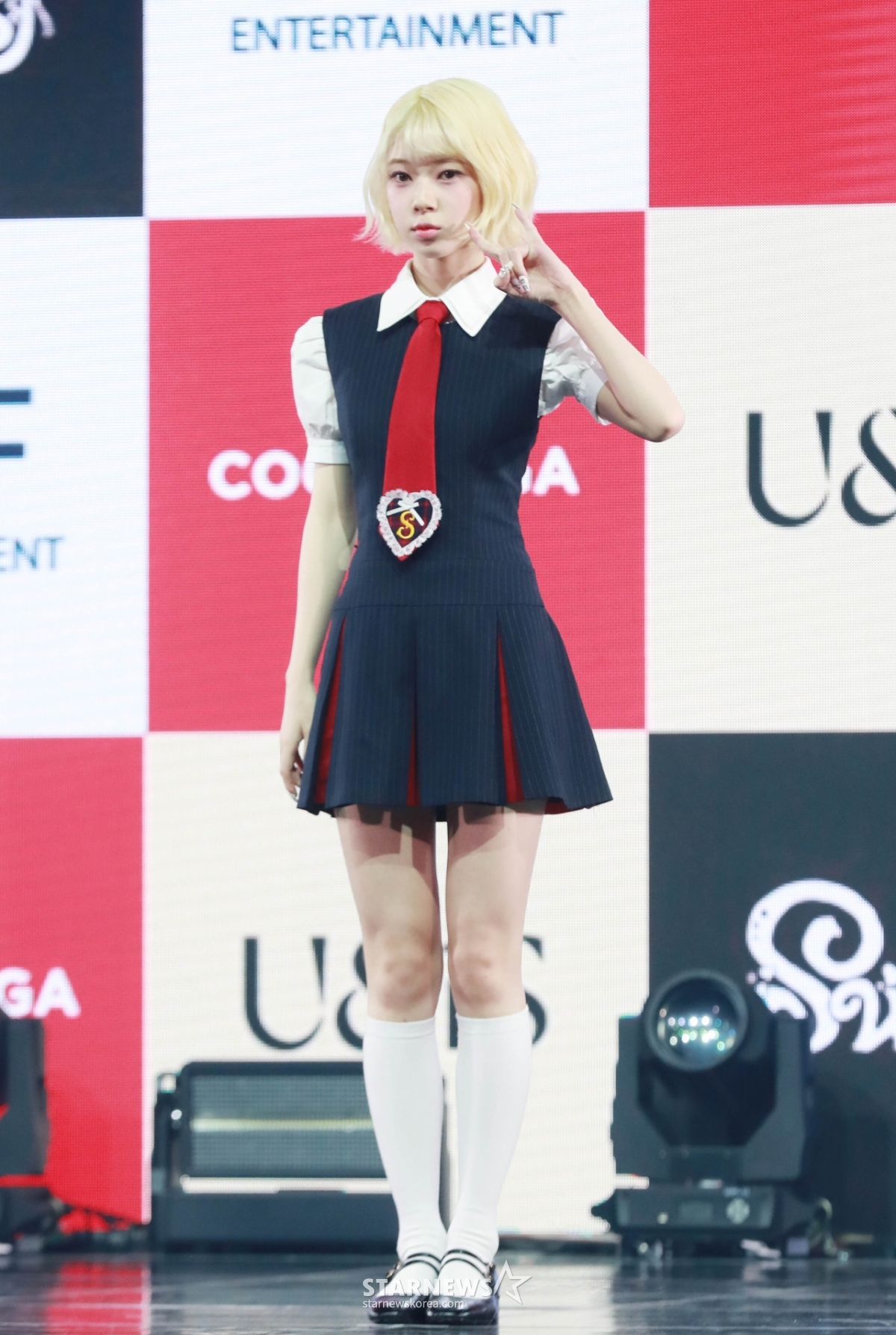 걸그룹 유니스(UNIS) 코토코가 15일 오후 서울 광진구 예스24라이브홀에서 진행된 두 번째 미니앨범 '스위시'(SWICY) 발매기념 쇼케이스에서 포즈를 취하고 있다.