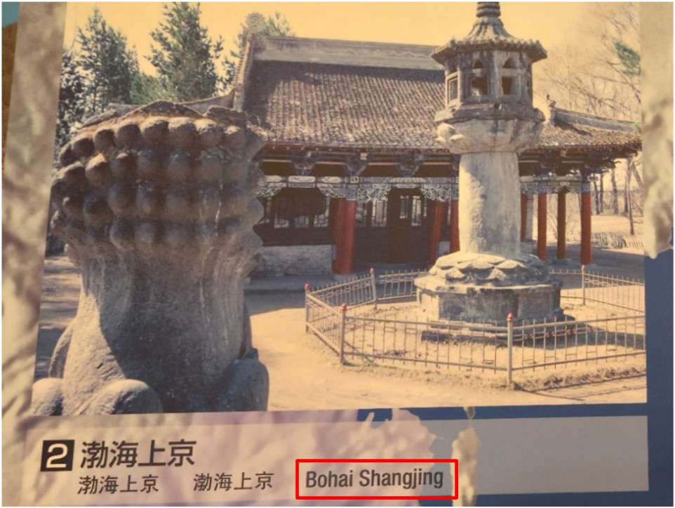 오사카 역사 박물관 초입부에는 고대 오사카 시절의 주변 나라 주요 도시들을 함께 소개하고 있는데, '발해 상경'을 'Bohai Shanging'으로 잘못 표기한 것이다.