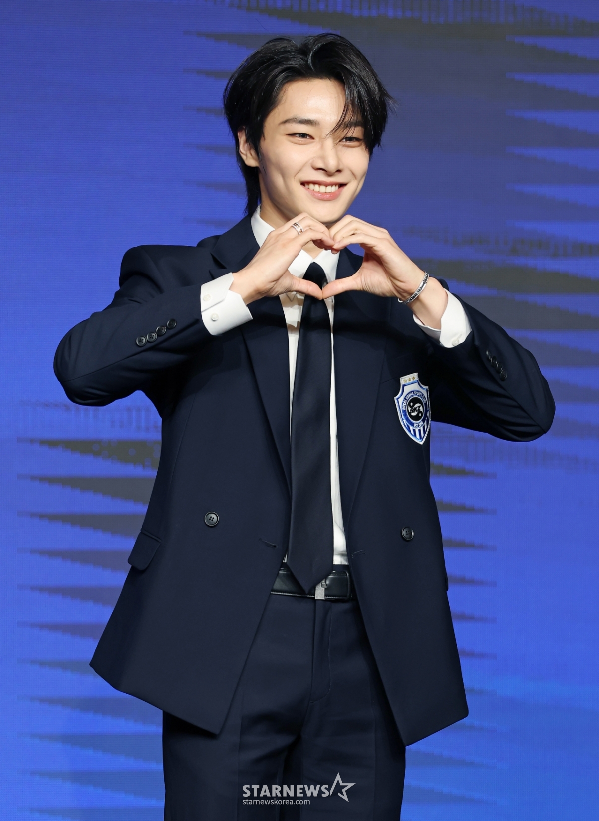그룹 스트레이키즈(Stray Kids) 아이엔이 22일 오전 서울 여의도 콘래드호텔에서 진행된 네 번째 정규 앨범 'KARMA'(카르마) 발매기념 기자간담회에 참석해 포즈를 취하고 있다.