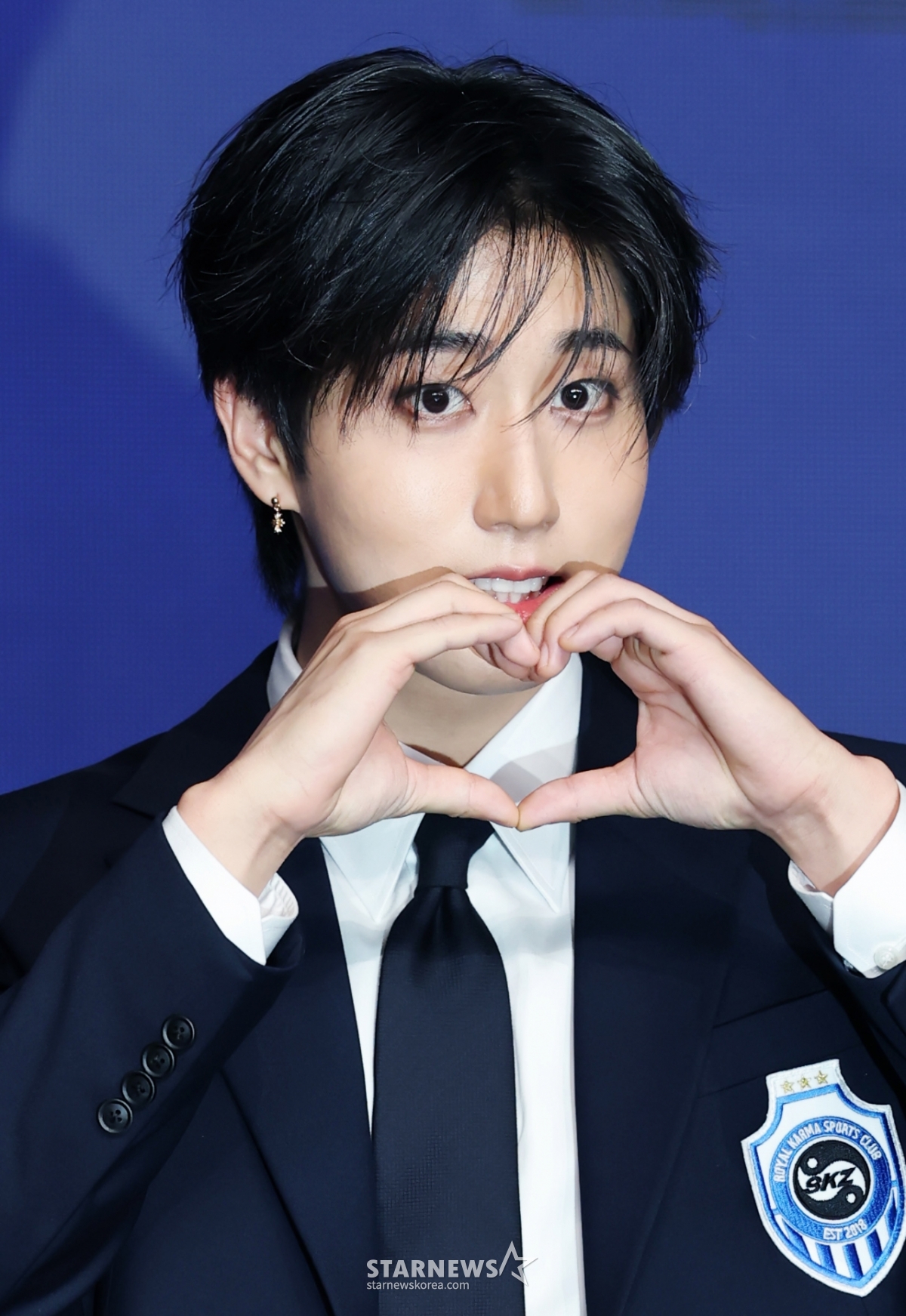 그룹 스트레이키즈(Stray Kids) 한이 22일 오전 서울 여의도 콘래드호텔에서 진행된 네 번째 정규 앨범 'KARMA'(카르마) 발매기념 기자간담회에 참석해 포즈를 취하고 있다.