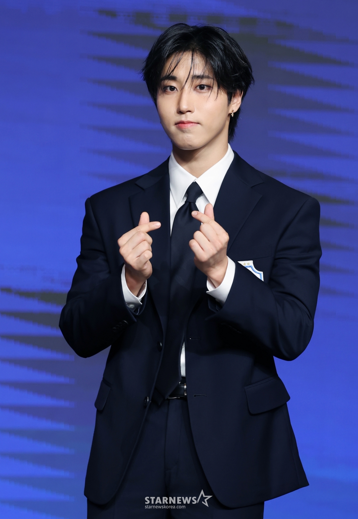 그룹 스트레이키즈(Stray Kids) 한이 22일 오전 서울 여의도 콘래드호텔에서 진행된 네 번째 정규 앨범 'KARMA'(카르마) 발매기념 기자간담회에 참석해 포즈를 취하고 있다.