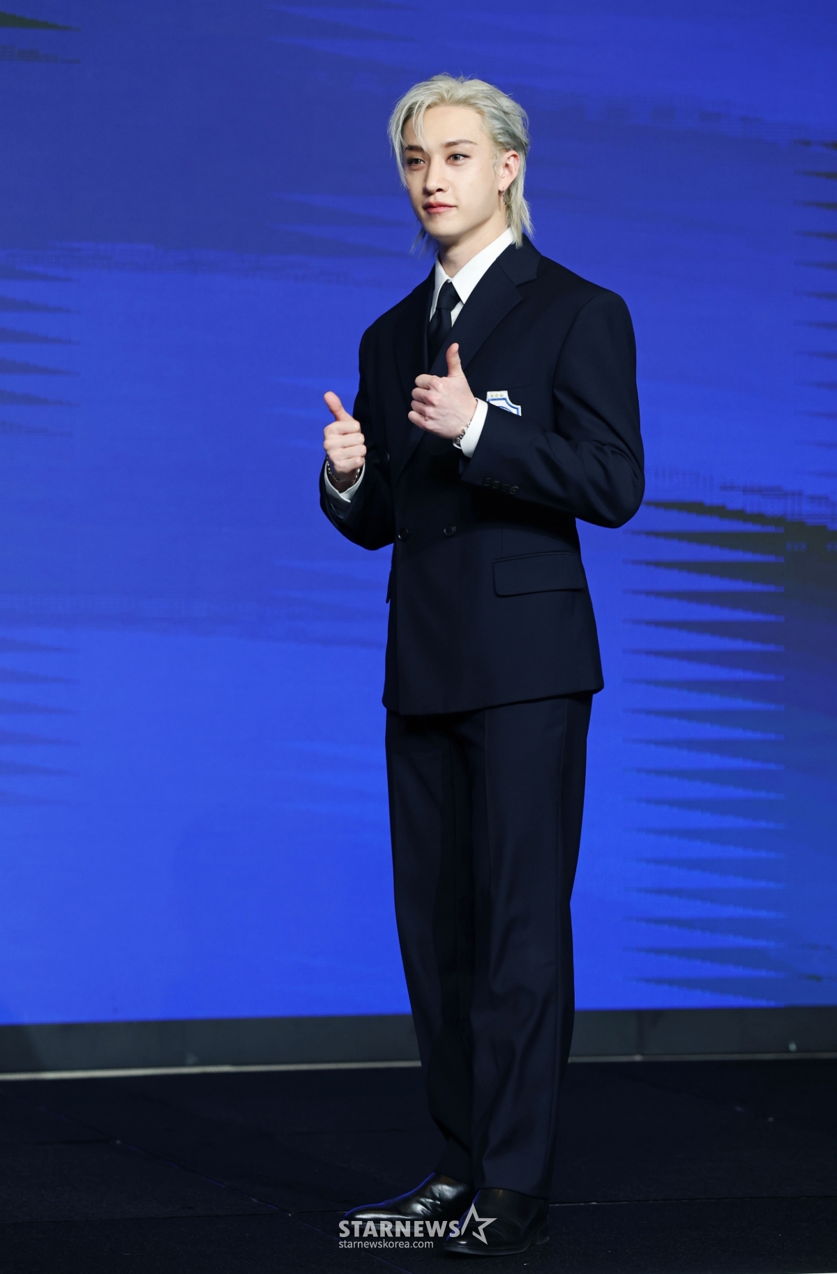 그룹 스트레이키즈(Stray Kids) 방찬이 22일 오전 서울 여의도 콘래드호텔에서 진행된 네 번째 정규 앨범 'KARMA'(카르마) 발매기념 기자간담회에 참석해 포즈를 취하고 있다.