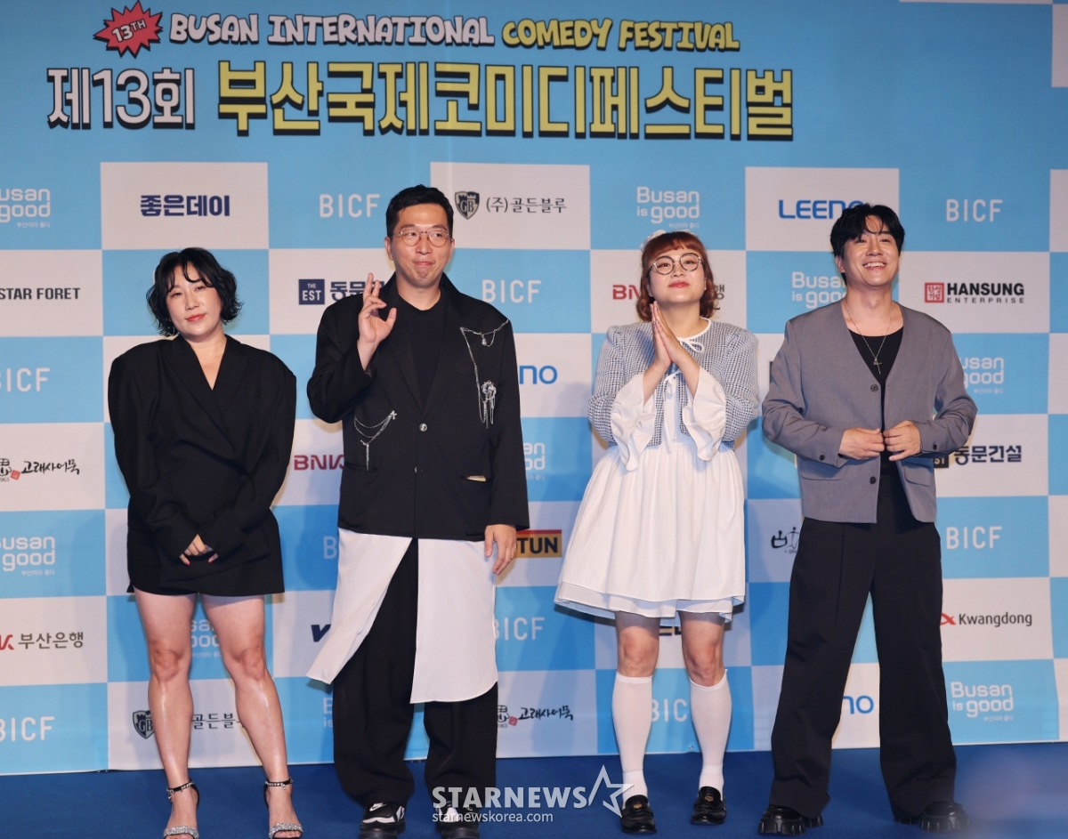연예대중문화김영희-정범균-조수윤-신윤승 '13회 부코페, 기대하세요'[★포토]발행 : 2025.08.29 ・ 20:26수정 : 2025.08.29 ・ 21:25부산=이동훈 기자광고삭제코미디언 김영희, 정범균, 조수윤, 신윤승이 29일 오후 부산 해운대구 벡스코 오디토리움에서 진행된 ‘제13회 부산국제코미디페스티벌(BICF)’ 블루카펫 행사에 참석해 포즈를 취하고 있다. /2025.08.29<저작권자 © 스타뉴스, 무단전재 및 재배포 금지>부산국제코미디페스티벌김영희정범균조수신윤승코페추천 기사이동훈 기자기자홈좋아요 연예-대중문화의 인기 급상승 뉴스연예-대중문화의 최신 뉴스