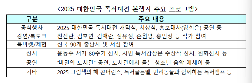 또한 부산 북구(9월 20~21일), 전북 전주(9월 5~7일), 경북 포항(9월 27~28일)에서도 지역 독서대전이 개최된다.