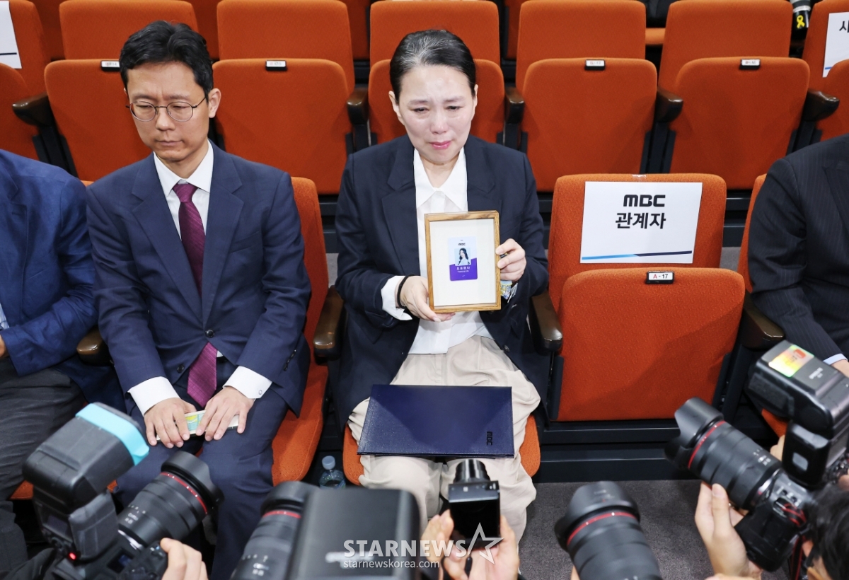 연예대중문화故오요안나 명예사원증 받은 모친[★포토]발행 : 2025.10.15 ・ 10:30이동훈 기자故 오요안나의 어머니 장연미씨가 15일 서울 마포구 상암동 MBC에서 진행된 유족측 기자회견에 앞서 안형준 MBC 사장으로부터 고인의 명예사원증을 받은 뒤 공개하고 있다. /2025.10.15<저작권자 © 스타뉴스, 무단전재 및 재배포 금지>오요안나유족기자회견오요안명예원증추천 기사이동훈 기자기자홈좋아요 연예-대중문화의 인기 급상승 뉴스연예-대중문화의 최신 뉴스
