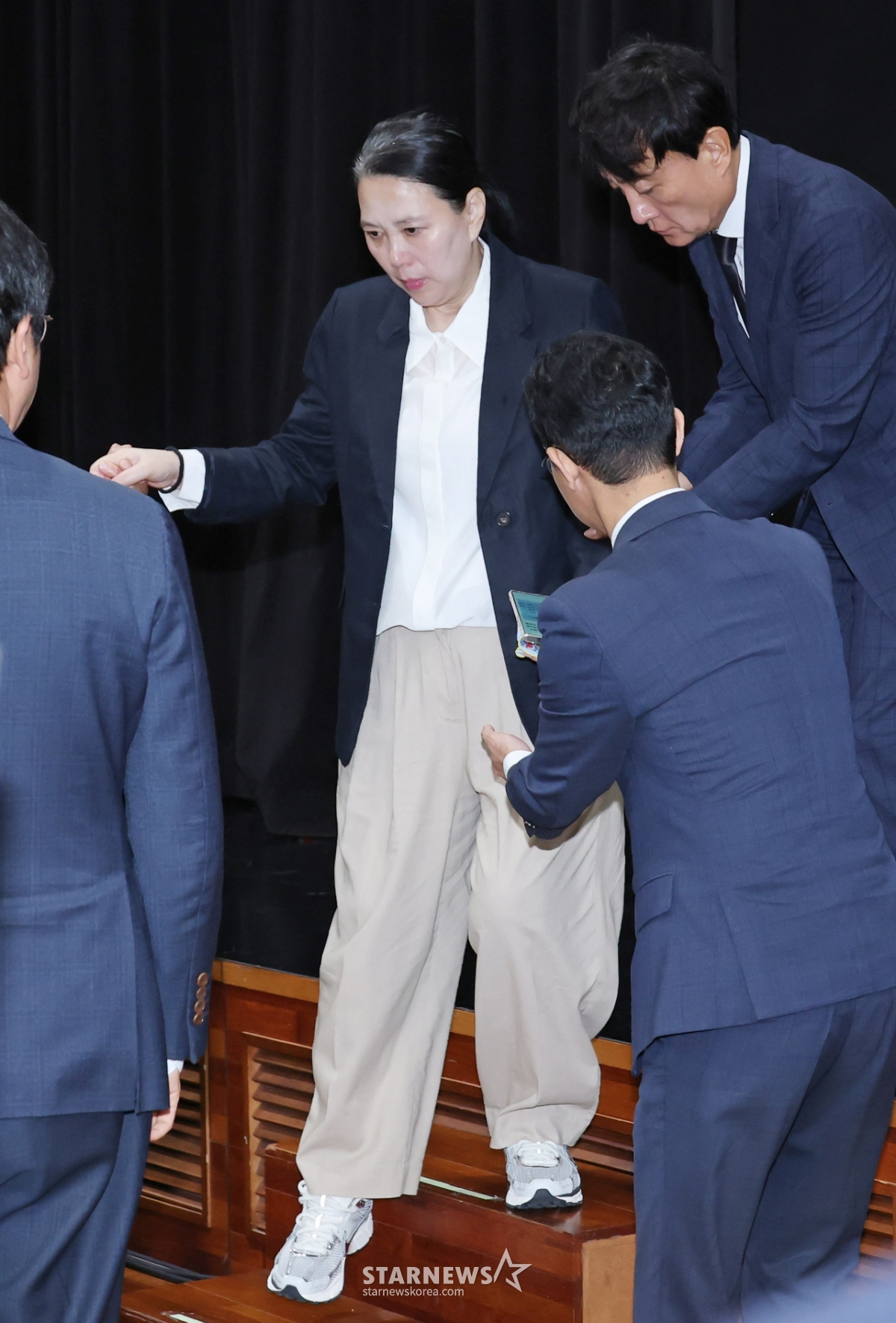 연예대중문화고 오요안나 母 '힘든 발걸음'[★포토]발행 : 2025.10.15 ・ 10:32이동훈 기자故 오요안나의 어머니 장연미씨가 15일 서울 마포구 상암동 MBC에서 진행된 유족측 기자회견에 앞서 안형준 MBC 사장으로부터 고인의 명예사원증을 받은 뒤 단상을 내려오고 있다. /2025.10.15<저작권자 © 스타뉴스, 무단전재 및 재배포 금지>오요안나유족기자회견오요안서울마포구추천 기사이동훈 기자기자홈좋아요 연예-대중문화의 인기 급상승 뉴스연예-대중문화의 최신 뉴스