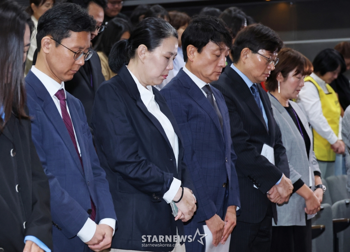 연예대중문화故오요안나 유족측 기자회견[★포토]발행 : 2025.10.15 ・ 11:22이동훈 기자故오요안나의 어머니 장연미씨(왼쪽 세번째)가 15일 서울 마포구 상암동 MBC에서 진행된 유족측 기자회견에 앞서 안형준 MBC 사장(왼쪽 네번째) 등과 묵념을 하고 있다. /2025.10.15<저작권자 © 스타뉴스, 무단전재 및 재배포 금지>오요안나유족기자회견오요안기자회견추천 기사이동훈 기자기자홈좋아요 연예-대중문화의 인기 급상승 뉴스연예-대중문화의 최신 뉴스