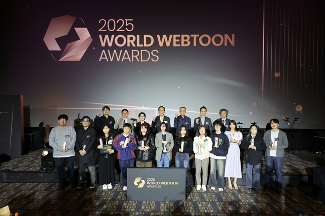 문화체육관광부(장관 최휘영)는 한국콘텐츠진흥원(원장직무대행 유현석)과 함께 22일 롯데시네마 월드타워점(서울 송파구) 8관에서 '2025 월드 웹툰 어워즈' 시상식을 개최했다고 밝혔다. 문체부 김영수 제1차관은 시상식 현장을 찾아 대상을 시상하고 관계자들을 격려했다.