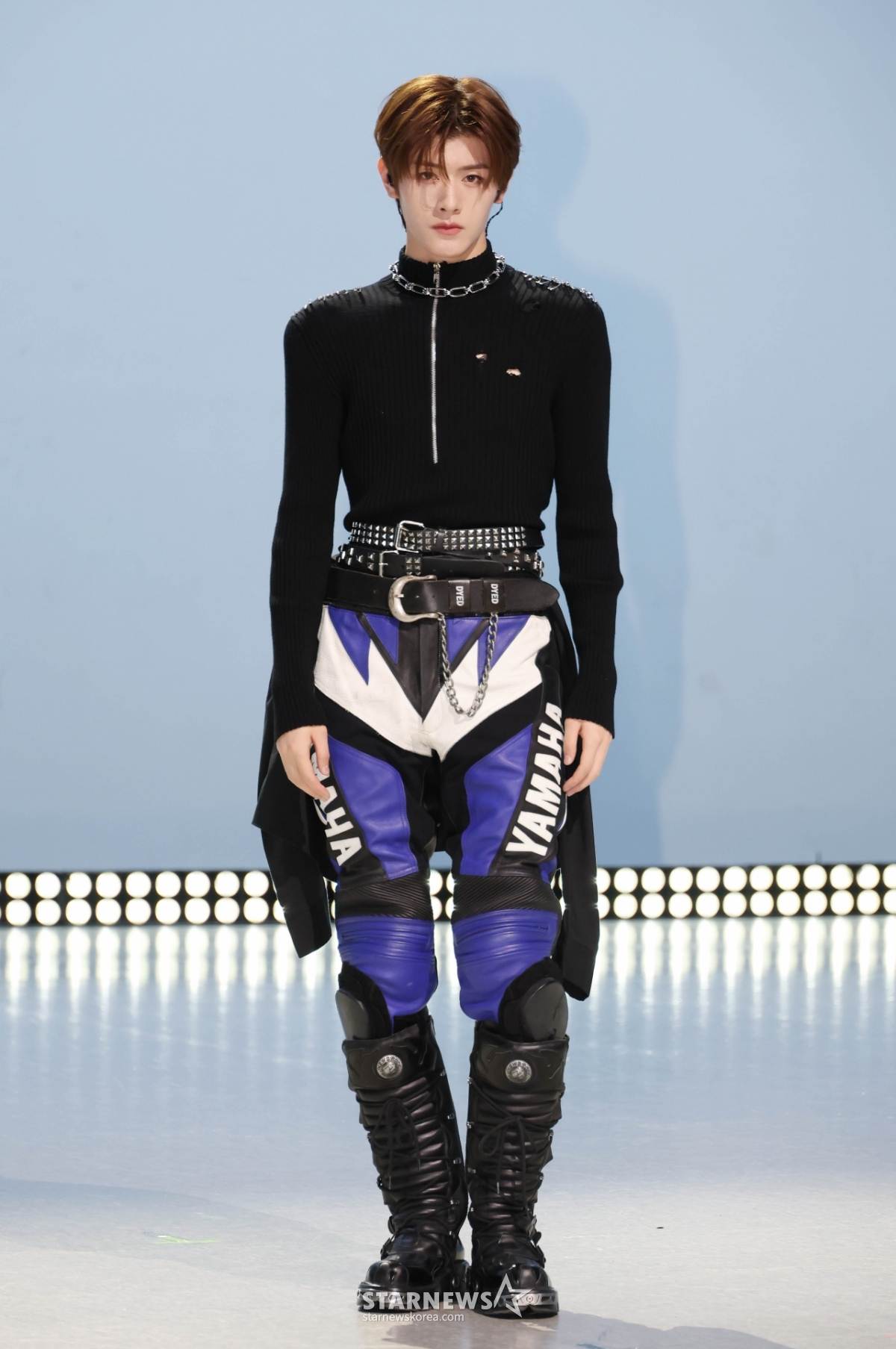 5인조 신인 보이그룹 AM8IC(엠빅) 청이가 10일 오후 서울 마포구 상암동 MBC 공개홀에서 진행된 첫 번째 EP ‘LUKOIE'(루코이에) 발매기념 쇼케이스에서 포즈를 취하고 있다.