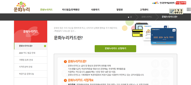 문화누리카드는 6세 이상 기초생활수급자와 차상위계층, 저소득 한부모 가족의 문화예술·여행·체육 활동을 지원하는 사업이다. 올해는 총 3696억 원(국비 2587억 원과 지방비 1109억 원)을 투입해 264만 명에게 연간 14만 원씩을 지원하고 있다.