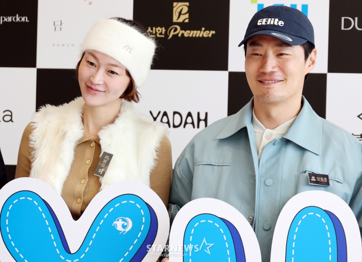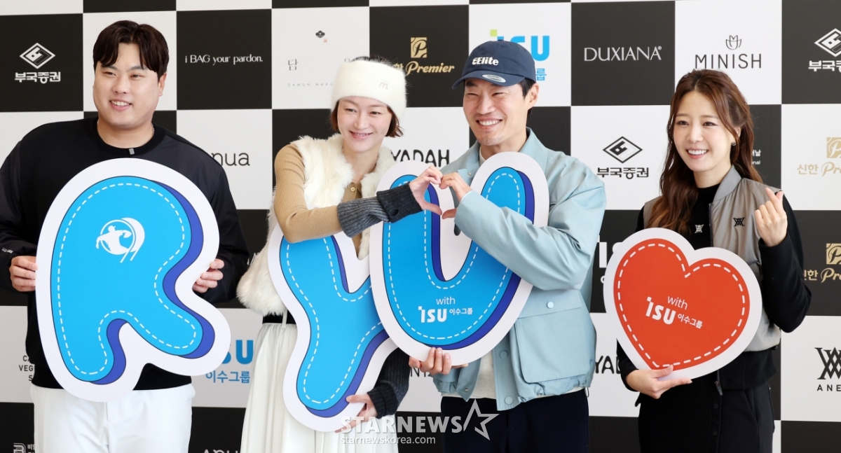 이혜정, 이희준 부부가 12일 횡성군 벨라45컨트리클럽에서 열린 자선기금 마련을 위한 '이수그룹과 함꼐하는 2025 류현진재단 자선골프대회'에 참여해 류현진 배지현 부부와 포토타임을 갖고 있다. 2025.11.12.
