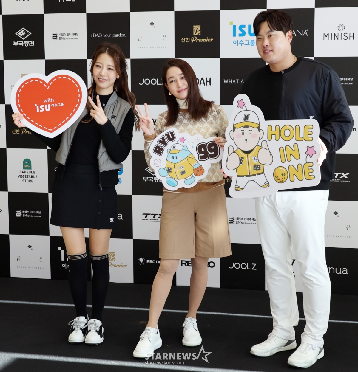 참가자들이 12일 횡성군 벨라45컨트리클럽에서 열린 자선기금 마련을 위한 '이수그룹과 함꼐하는 2025 류현진재단 자선골프대회'에 참여해 류현진 배지현 부부와 포토타임을 갖고 있다. 2025.11.12.