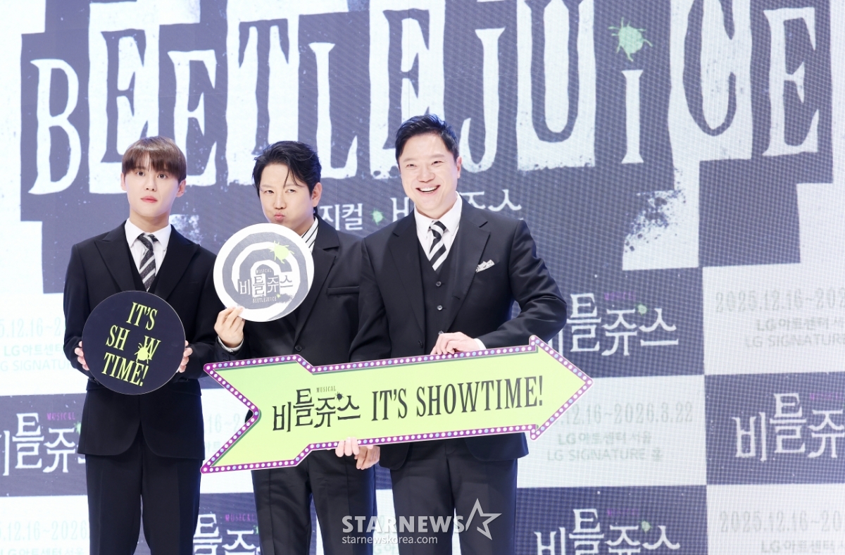 연예대중문화김준수-정원영-정성화, 3인3색 다 다른 매력의 비틀쥬스[★포토]발행 : 2025.12.01 ・ 11:22김휘선 기자뮤지컬 배우 김준수, 정원영, 정성화가 1일 서울 강남구 엘리에나호텔에서 진행된 뮤지컬 '비틀쥬스' 기자간담회에 참석해 포즈를 취하고 있다. /2025.12.01<저작권자 © 스타뉴스, 무단전재 및 재배포 금지>브리핑뮤지컬 배우 김준수, 정원영, 정성화가 '비틀쥬스' 기자간담회에 참석했다.추천 기사김휘선 기자기자홈좋아요연예-대중문화의 인기 급상승 뉴스연예-대중문화의 최신 뉴스