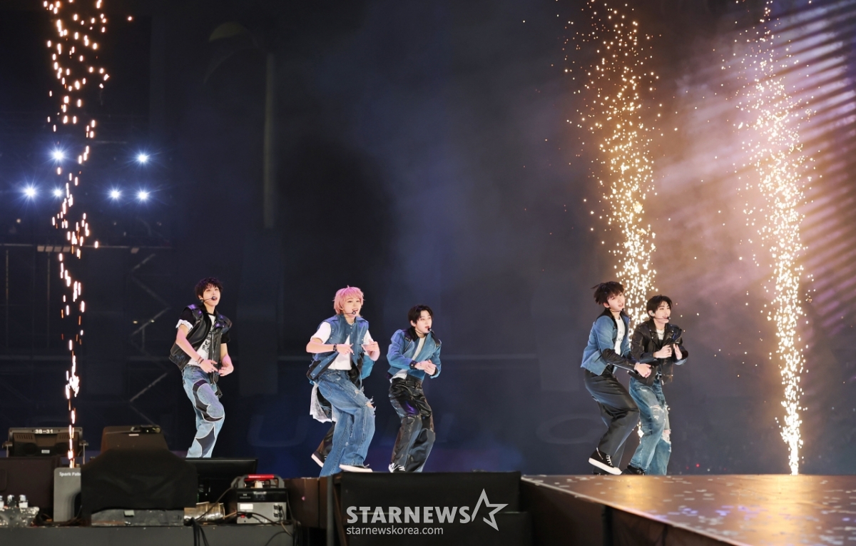 그룹 킥플립이 7일 가오슝 내셔널 스타디움에서 진행된 스타뉴스 주최 '10주년 아시아 아티스트 어워즈 2025(10th Anniversary Asia Artist Awards 2025, '10주년 AAA 2025')를 기념하는 'ACON 2025'에서 멋진 무대를 선보이고 있다.