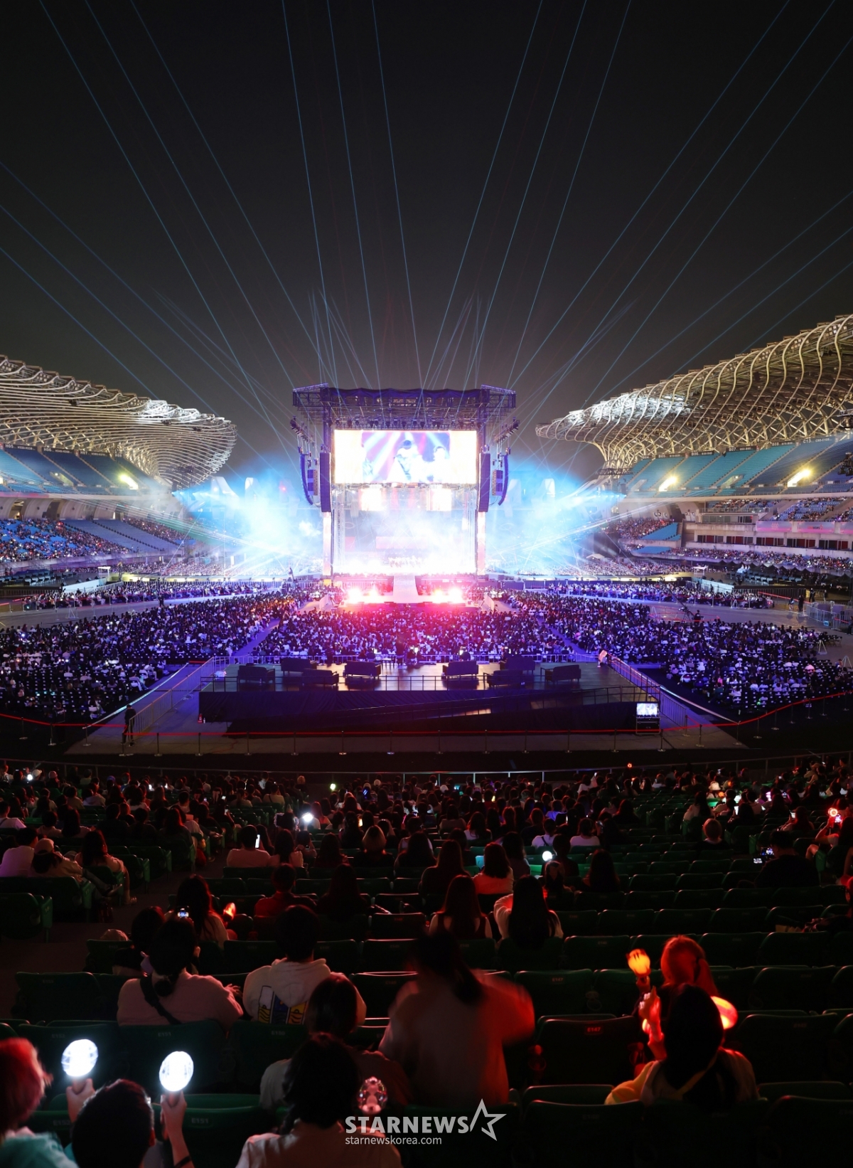 7일 가오슝 내셔널 스타디움에서 진행된 스타뉴스 주최 '10주년 아시아 아티스트 어워즈 2025(10th Anniversary Asia Artist Awards 2025, '10주년 AAA 2025')를 기념하는 'ACON 2025'에서 출연진이 멋진 무대를 선보이고 있다.