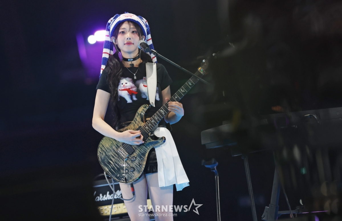 밴드 QWER 히나가 7일 가오슝 내셔널 스타디움에서 진행된 스타뉴스 주최 '10주년 아시아 아티스트 어워즈 2025(10th Anniversary Asia Artist Awards 2025, '10주년 AAA 2025')를 기념하는 'ACON 2025'에서 멋진 무대를 선보이고 있다.