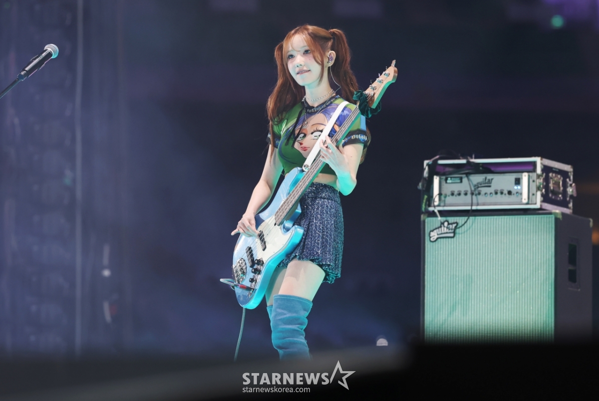 밴드 QWER 마젠타가 7일 가오슝 내셔널 스타디움에서 진행된 스타뉴스 주최 '10주년 아시아 아티스트 어워즈 2025(10th Anniversary Asia Artist Awards 2025, '10주년 AAA 2025')를 기념하는 'ACON 2025'에서 멋진 무대를 선보이고 있다.