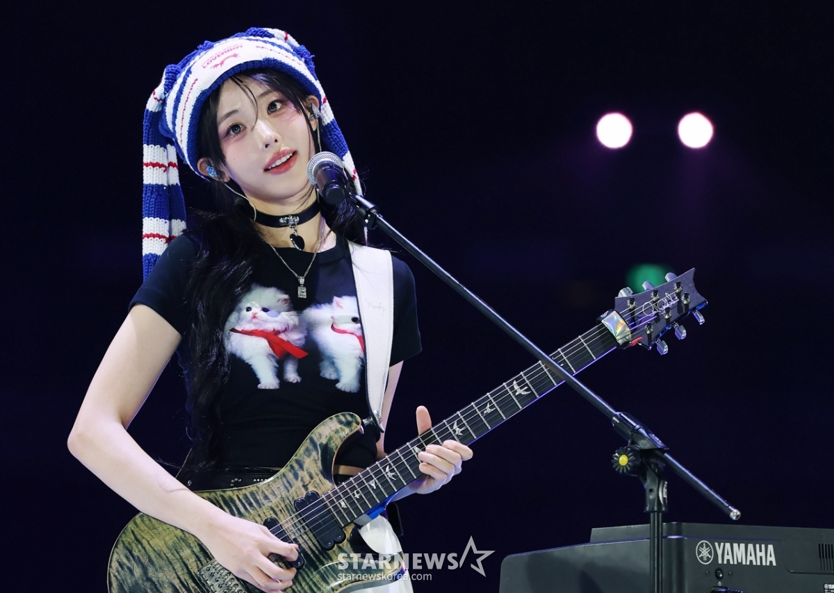 밴드 QWER 히나가 7일 가오슝 내셔널 스타디움에서 진행된 스타뉴스 주최 '10주년 아시아 아티스트 어워즈 2025(10th Anniversary Asia Artist Awards 2025, '10주년 AAA 2025')를 기념하는 'ACON 2025'에서 멋진 무대를 선보이고 있다.